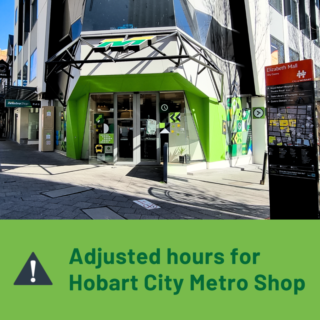 Please note, our Hobart City Metro Shop will be operating to adjusted hours over the coming week.