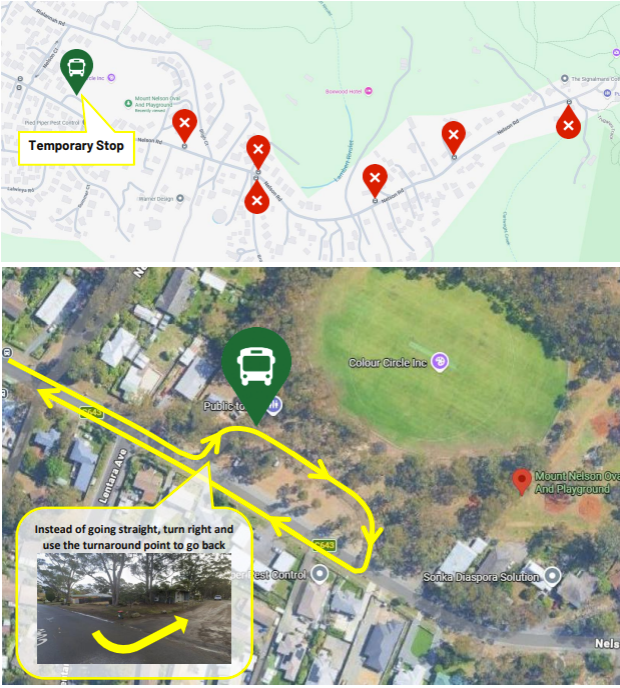 Due to large New Year’s Eve crowds and illegal parking near the Mount Nelson Lookout, buses are often unable to safely turn at the Mount Nelson Terminus. To avoid delays and disruptions, some Route 457 services will start and finish at Mount Nelson Oval instead of the usual terminus.