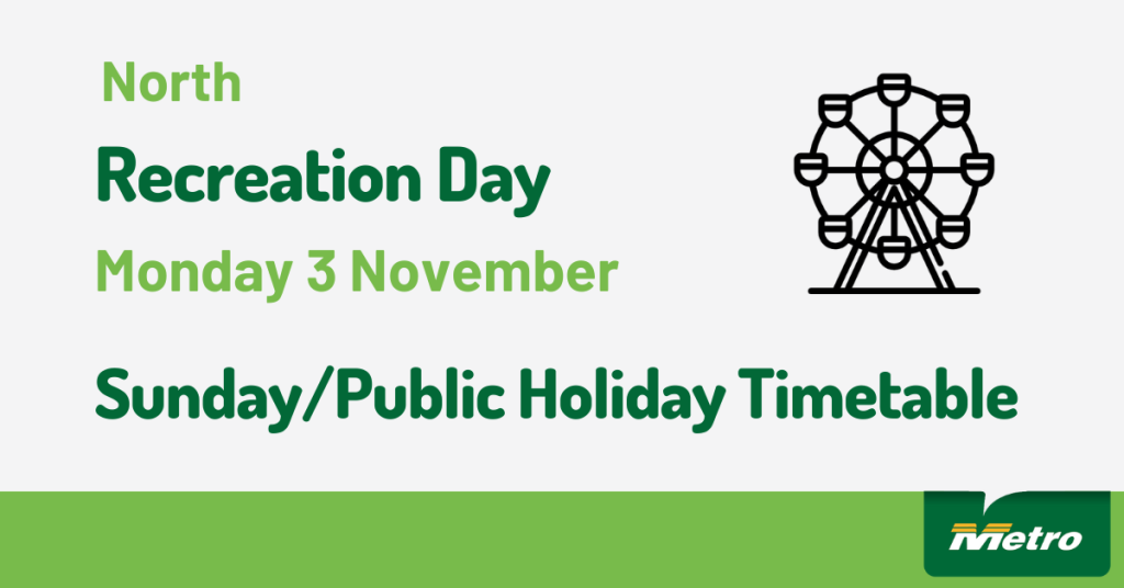 Metro will operate to Sunday/Public Holiday timetables in Burnie and Launceston on Monday 3 November 2025, for the Recreation Day public holiday.