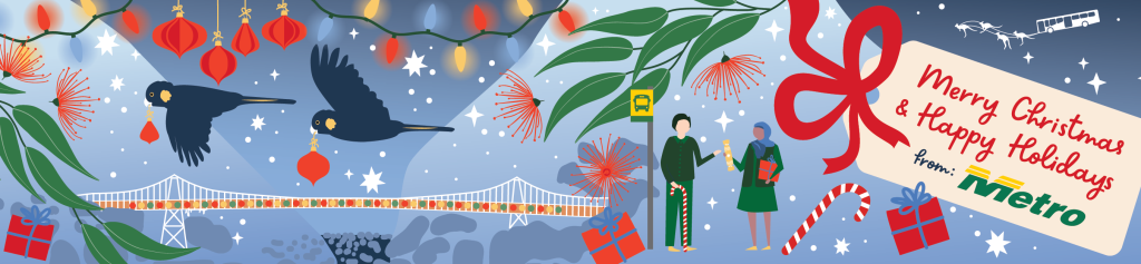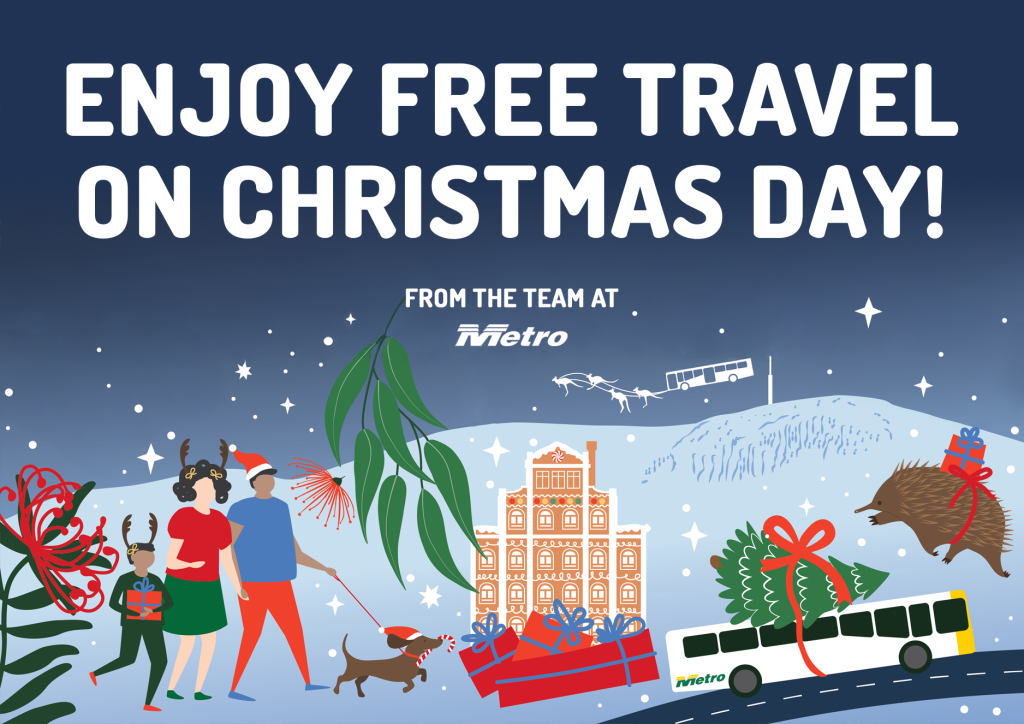 Metro is offering free bus travel statewide on Christmas Day (Thursday 25 December 2025). Our bus services will be operating to the Sunday / Public Holiday timetables.