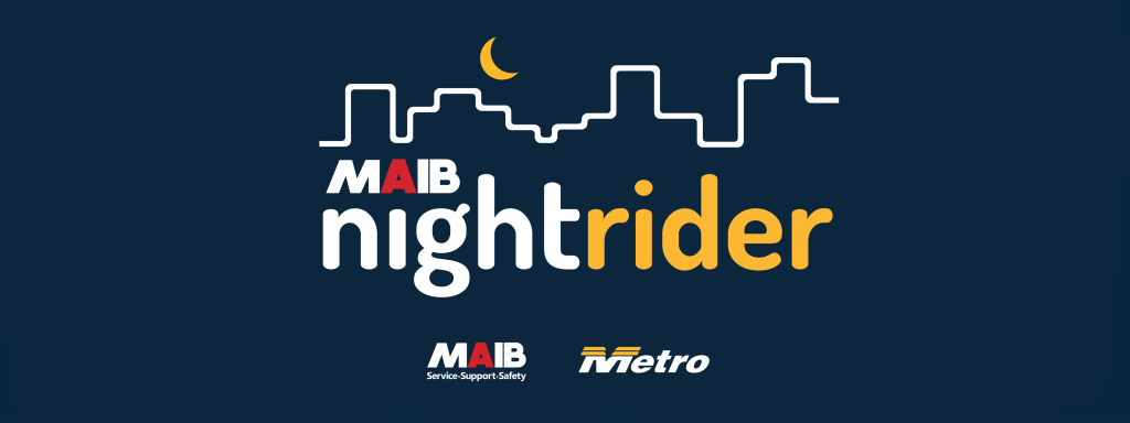 Leave your car keys at home and take advantage of half price fares on all Metro services! This New Year’s Eve, Metro will be running extra MAIB Nightrider services, brought to you by MAIB.